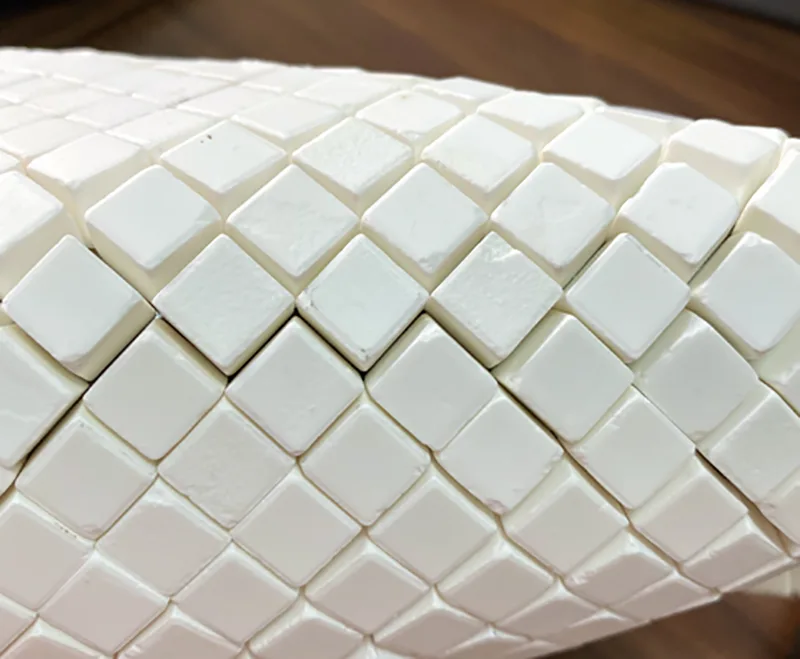 Para sa mga panloob na lining sa mga curved pipe, ang 【alumina ceramic mosaic pad wear-resistant linings】 ay kumakatawan sa isang mahusay na pagpipilian. Ang mga pad na ito ay karaniwang nakadikit sa papel o mesh backing, na nagbibigay-daan sa mabilis at mahusay na pag-install sa mga curved steel surface gamit ang epoxy adhesive. Mabisa nitong pinipigilan ang pagkasira ng mga bakal na tubo na dulot ng daloy ng materyal.