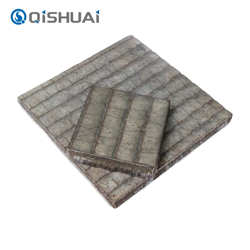 Ang Shandong Qishuai Wear-Resistant Equipment Co., Ltd.'s Chromium Carbide Wear Plate ay binubuo ng isang high-hardness wear-resistant layer na naka-bond sa isang napaka-ductile na substrate. Mayroong medyo malaking halaga ng hard chromium carbide particle sa wear resistant layer. Ang mga ito ay pantay na nakakalat sa layer ng haluang metal upang bumuo ng isang malakas na layer na anti-wear. Ang chromium carbide ay may napakataas na tigas at pagganap ng antichemical diffusion. Maaari itong lumaban sa pagguho, alitan at epekto ng materyal at lubos na mapabuti ang buhay ng serbisyo ng kagamitan. Ang substrate ay gumagamit ng mataas na kalidad na mababang carbon steel o mababang haluang metal na bakal. Ang mga plato ay may mahusay na lakas at katigasan upang matiyak ang matatag na operasyon sa iba't ibang malupit na kapaligiran.