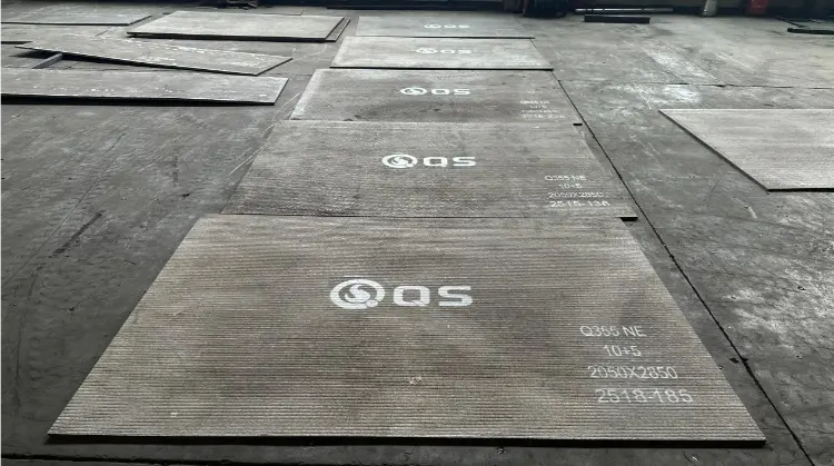 (3) Chromium Carbide Overlay Plate: Ang mga clad wear-resistant plate ng Shandong Qishuai ay pangunahing mga chromium carbide alloy-clad plate. Gamit ang proseso ng cladding, isa o higit pang mga layer ng wear-resistant alloy na naglalaman ng mataas na konsentrasyon ng chromium carbide hard particle ay inilalapat sa isang substrate ng medium-to low-carbon steel plates gaya ng Q235. Pinagsasama ang tibay ng mga steel plate na may wear resistance ng haluang metal, ang mga plate na ito ay maaaring direktang gupitin at hinangin, na ginagawa itong angkop para sa isang malawak na hanay ng mga kumplikadong sitwasyon sa pag-install.